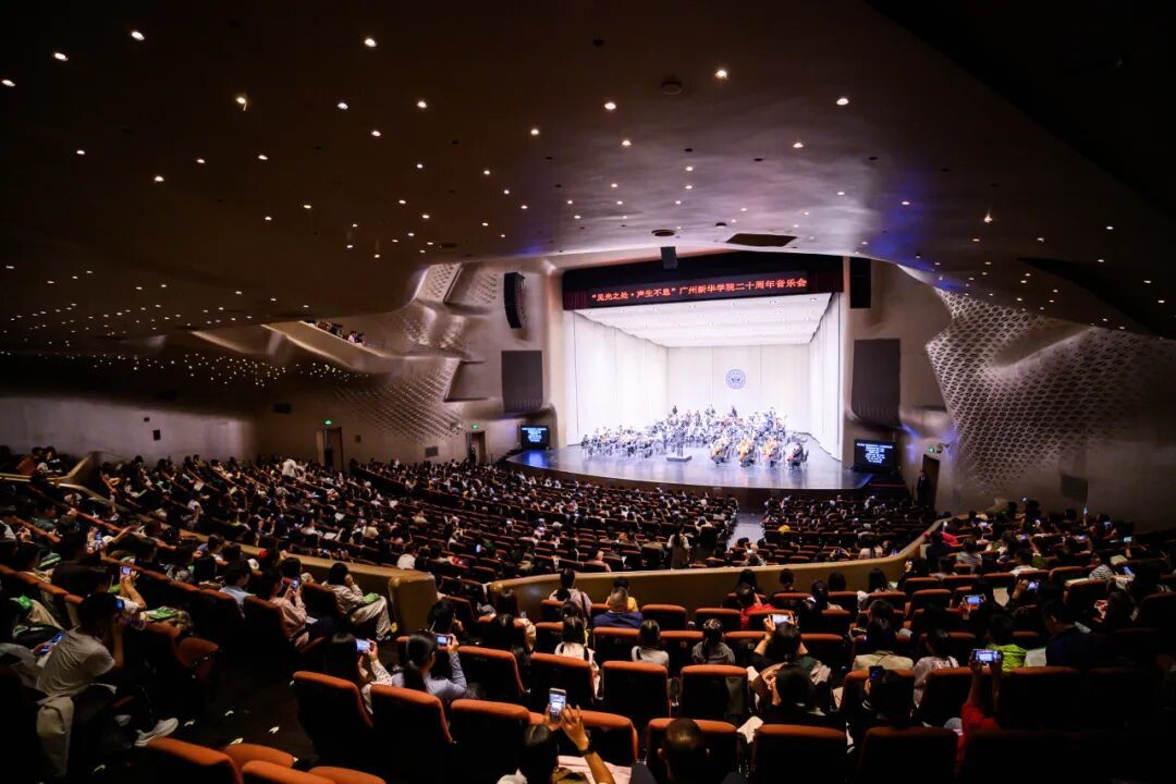12月1日晚,广州大剧院歌剧厅华灯璀璨、群贤毕至。在这座粤港澳大湾区文化地标,广州新华学院以一场主题为“见光之处·声生不息”的高规格音乐会,隆重呈献学校二十周年办学历程中最具象征意义的美育礼赞。学校董事长刘荣海,董事会董事、副校长刘婉莉(霖霖),以及来自校友、师生、生源地中学校长代表和社会各界的嘉宾齐聚一堂,共同见证广州新华学院二十年美育育人成果的高光绽放。